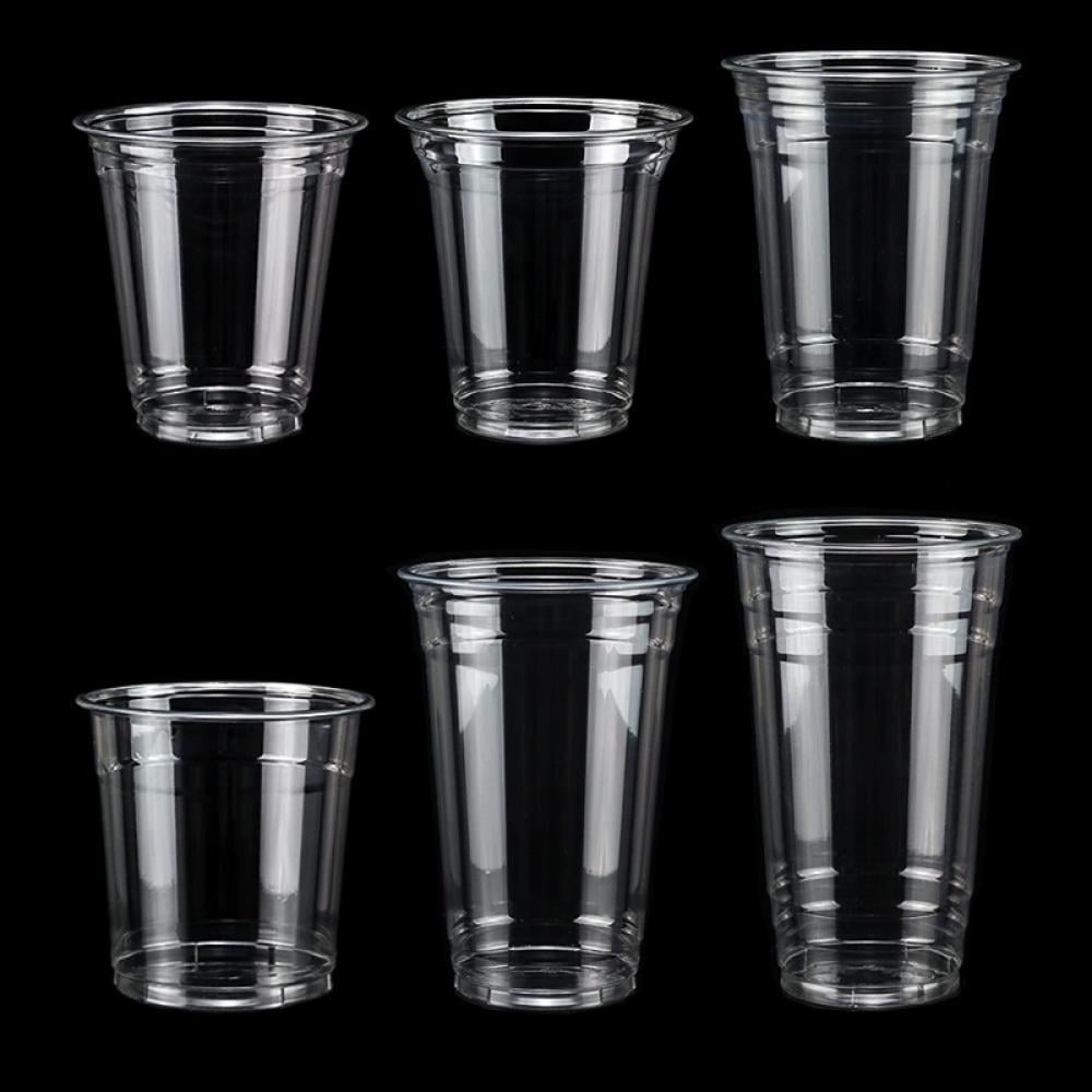 أكواب عصير بلاستيكية شفافة مصنوعة من مادة PET عالية الجودة، تتميز بالمتانة والوضوح لتقديم المشروبات الباردة بشكل أنيق واحترافي. مثالية للعصائر، القهوة الباردة، والمشروبات الغازية في المقاهي والمناسبات.