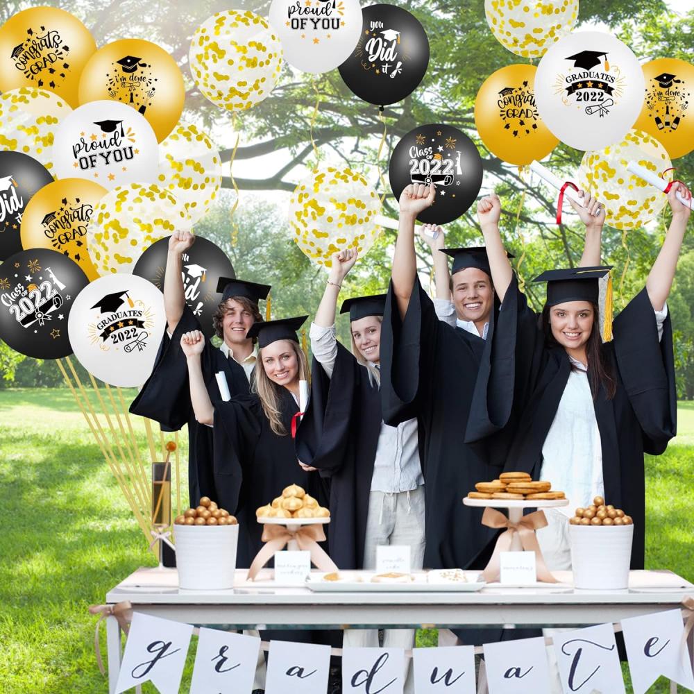 العبوة: تتضمن مجموعة بالونات حفلات التخرج كل بالون 12 بوصة؛تصميم مثالي: مع الأسود الكلاسيكي اللامع والذهبي كالألوان الرئيسية، والمطبوعة بكلمات