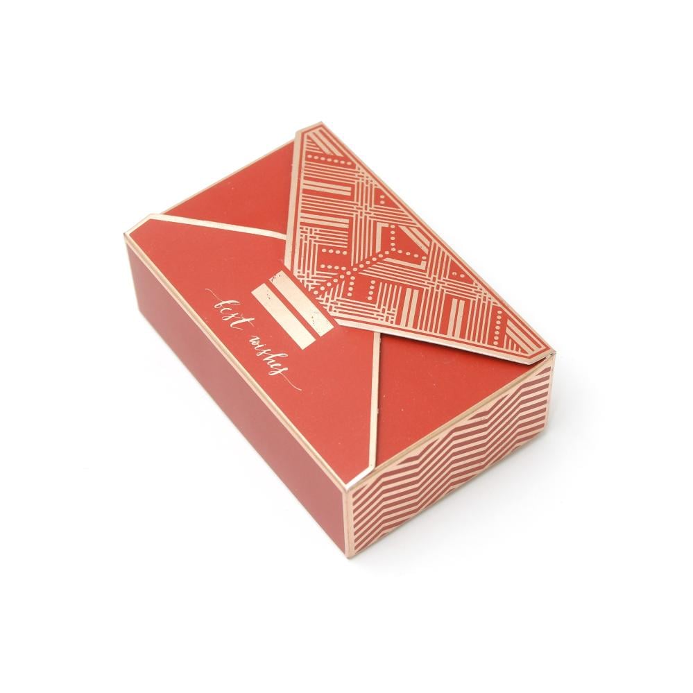 علبة تغليف عصرية على شكل ظرف تضيف لمسة فاخرة لهداياك. تتميز بتصميم جذاب وألوان متعددة تناسب جميع المناسبات. مصنوعة بجودة عالية لتوفير تجربة تغليف مميزة وسهلة.