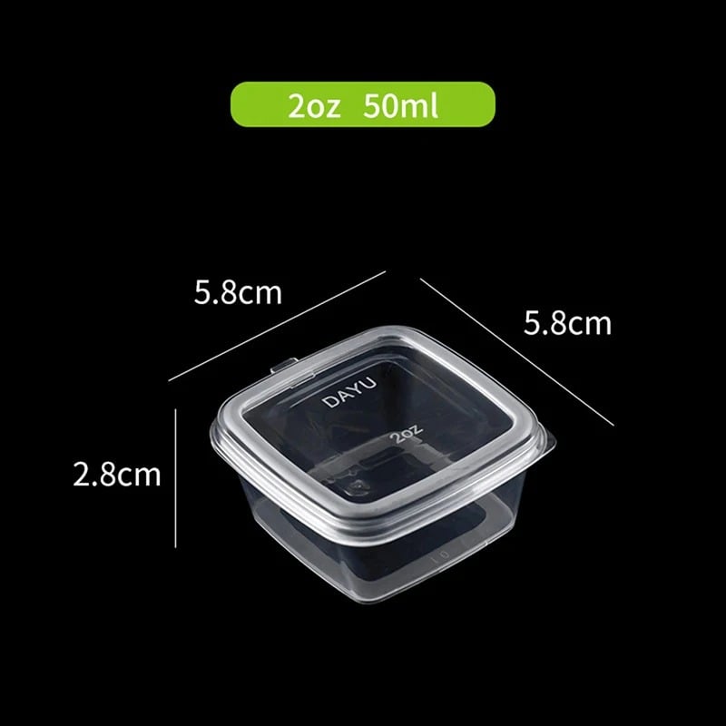 علبة بلاستيكية مربعة للصوصات بغطاء قوي محكمالسعة: 1 انز = 30 ملالطول: 5.5 سمالعرض: 5.5 سمالارتفاع: 3.5 سمالعدد: 50 علبة