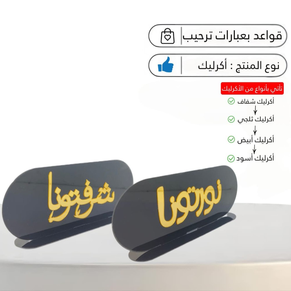 قواعد اكريليك بجمل ترحيبية ملائمة لكافة مناسباتك فقط قم بإختيار الجمل التي تود طباعتها على قواعد الأكريليك واترك بقية العمل علينا لتحصل على نتيجة مثالية لا تفوت !