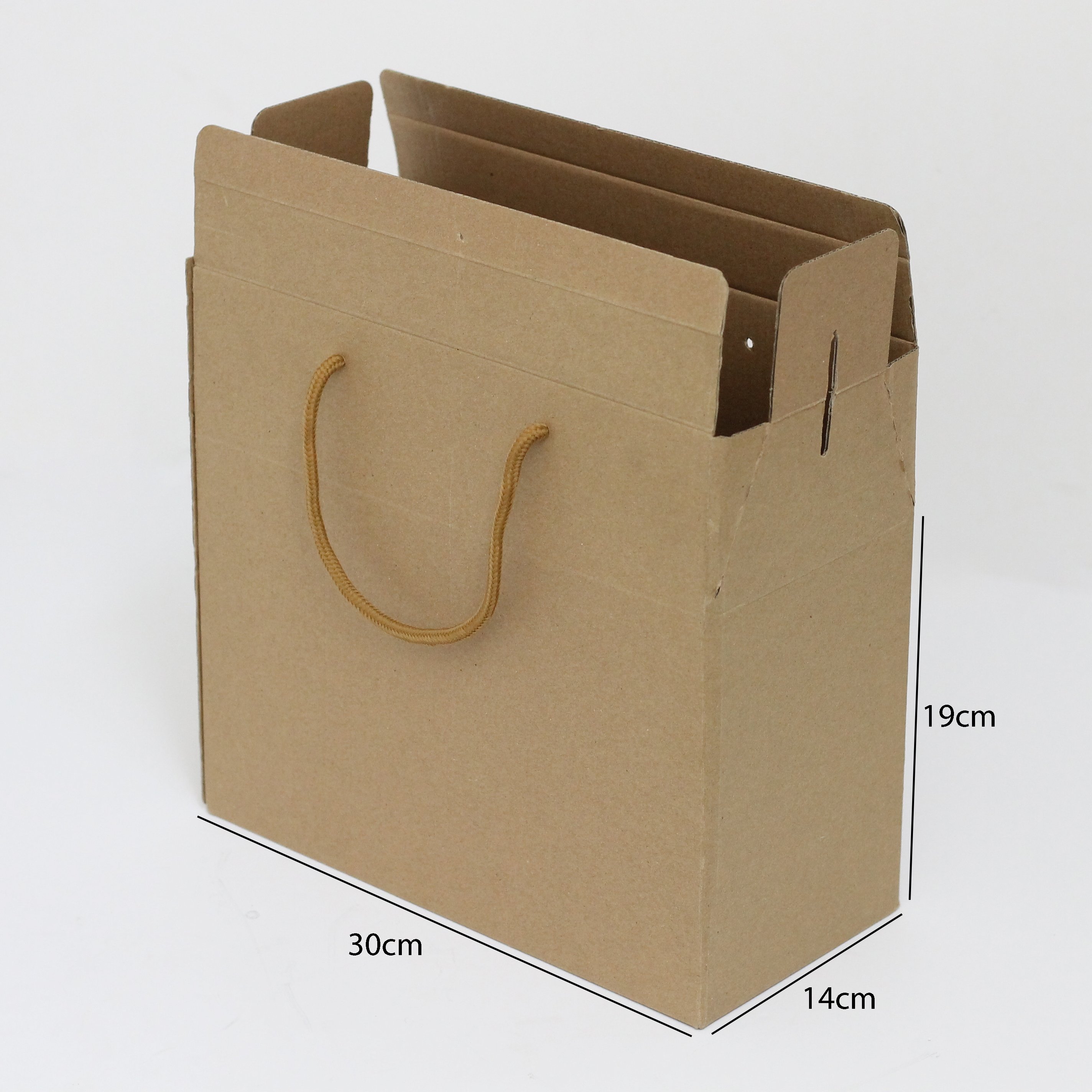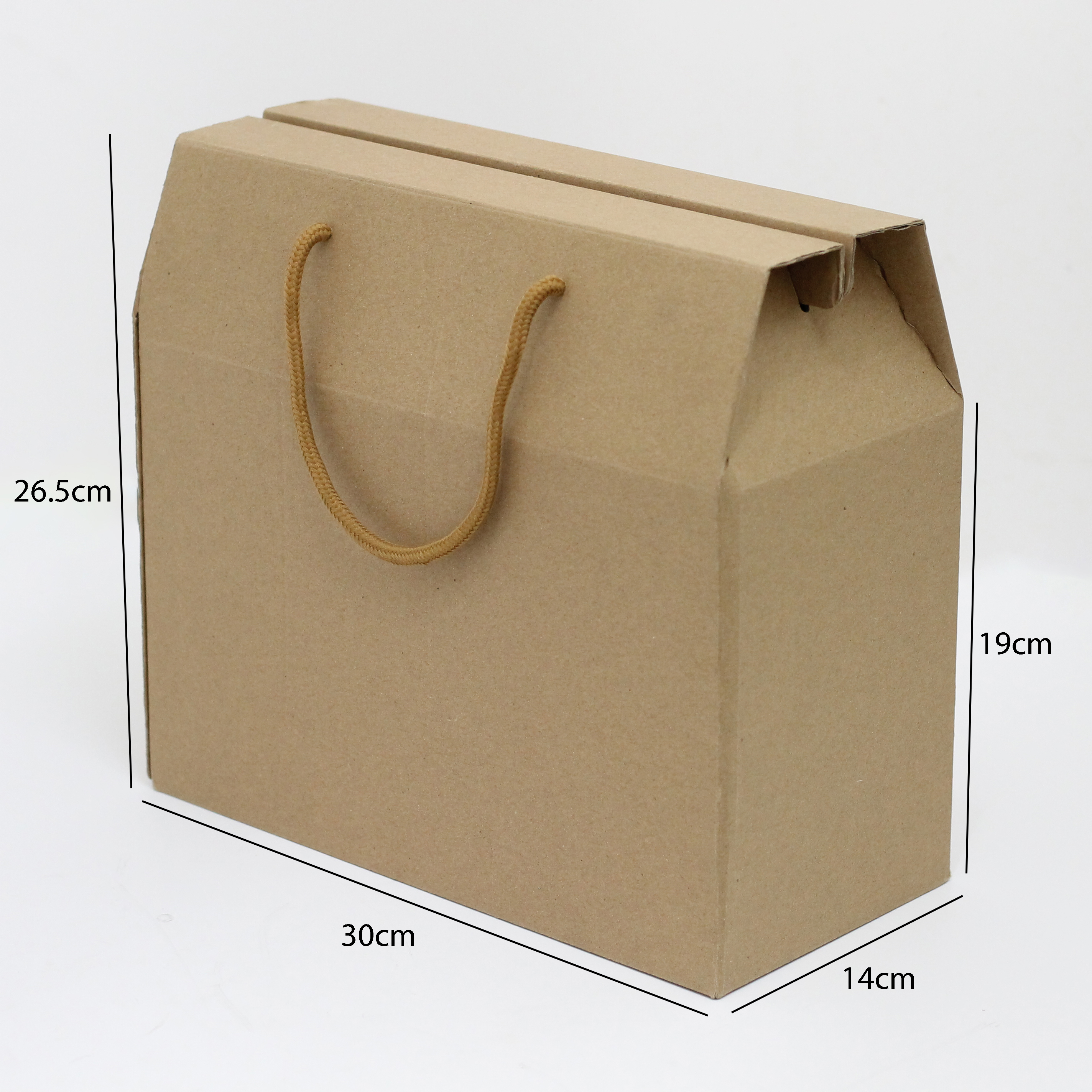 كرتون شحن بتصميم فريد يشبه الشنطة، مزود بمقبض حبل يسهل حمله ونقله، مثالي لشحن وتغليف المنتجات بطريقة منظمة وآمنة. يتميز بمظهر أنيق يجمع بين العملية والشكل الجذاب مما يجعله مناسبًا لتغليف الهدايا أو الشحن التجاري.